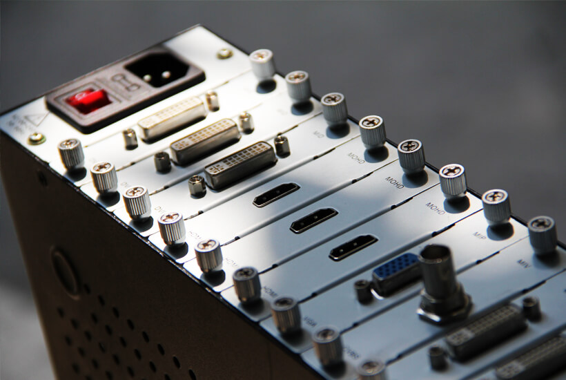 伯奧克新一代研發(fā)生產(chǎn)的多個(gè)模擬和數(shù)字矩陣整合于一個(gè)真正模塊化、可擴(kuò)展、可現(xiàn)場(chǎng)配置的高清混合矩陣。其最大的特點(diǎn)是采用插卡式機(jī)箱設(shè)計(jì),非常適合于在短的時(shí)間內(nèi),花費(fèi)較少的人力成本來(lái)安裝新的或替換已有的矩陣切換器板卡。從8、16、17、36、72、最大可配置為 144x144。可選擇HDMI、DVI、VGA&RGB、3G-SDI、CVBS、YPBPR、Fiber、HDBaseT 等接口形式作為輸入輸出,解決了視音頻會(huì)議項(xiàng)目中由于視頻信號(hào)源種類(lèi)繁多,各種信號(hào)不兼容的困難,并最大程度的節(jié)省成本,利于系統(tǒng)升級(jí)、擴(kuò)容及維護(hù)。