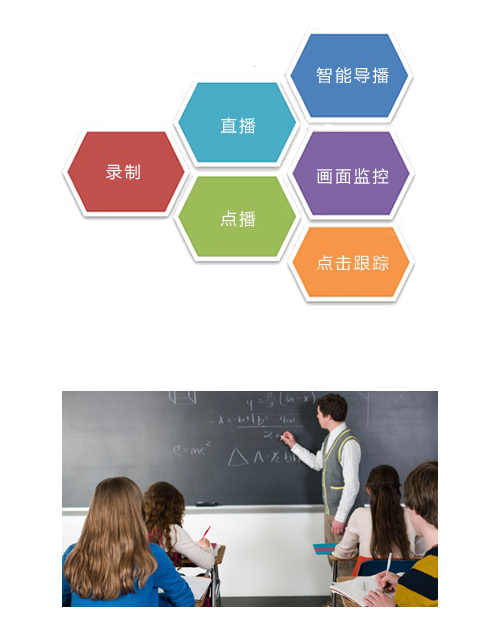 教育錄播系統(tǒng)集高清視頻跟蹤、編碼、導(dǎo)播、交互及錄播平臺于一體的集成錄播系統(tǒng),基于嵌入式硬件架構(gòu)設(shè)計,可以同時進行特技切換,完成智能導(dǎo)播,同時渲染出多畫面分割、畫中畫效果,生成電影模式全高清視頻流。